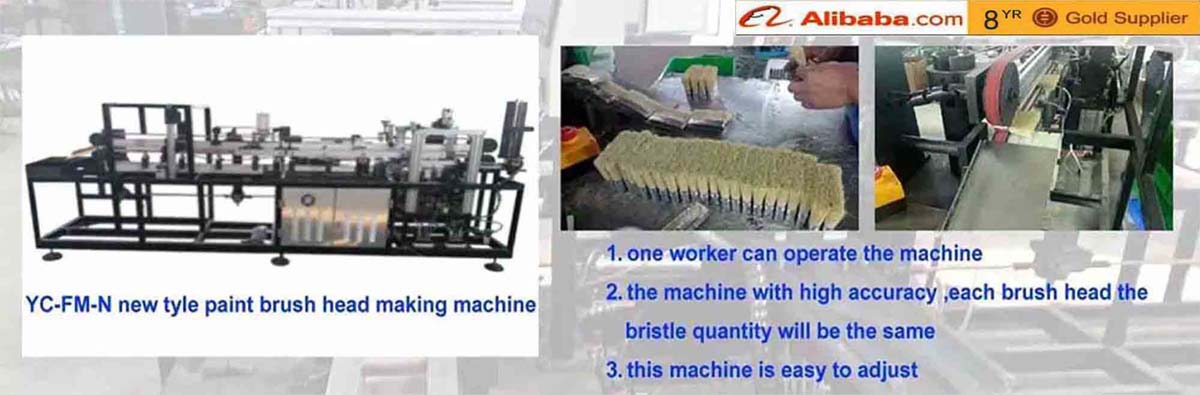 Foshan Yi Chao Machinery Co.,Ltd. Locates in Foshan city, our production base locates in Anqing city, which belong to Anhui province, and we professional produce paint brush making machine for a long history, so has rich experience in this field, we can offer both automatic production line and semi-automatic production line for paint brush production, saying we have automatic nailing machine, automatic ferrule machine, automatic wooden handle machine, bristle combing mach